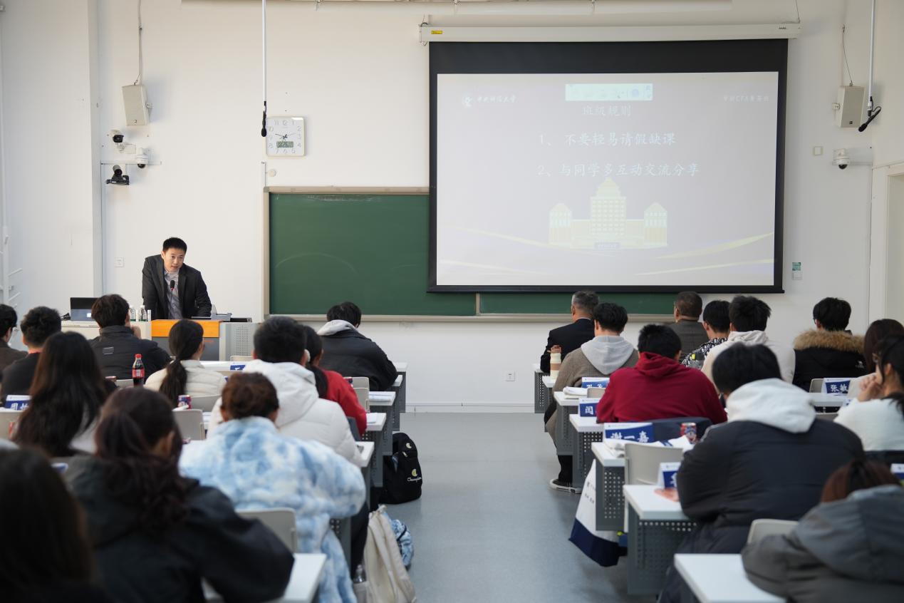 蔡如海院长在致辞中首先向新学员们表达了热烈欢迎与殷切期许。他结合中央财经大学在财政金融领域的深厚学科积淀,以及继续教育学院二十余年深耕成人教育的办学历程,深入阐释了CFA菁英班设立的核心价值。他强调,立足 “精准赋能金融人才成长” 的核心定位,精心打造的系列培训项目,是以特许金融分析师考培为载体,将中财大在金融理论研究、行业实践资源、师资团队建设上的优势深度融入课程设计,精准回应在校大学生对专业深化、能力进阶与就业突围的核心需求,更针对金融行业就业竞争趋势,提前为学生搭建 “专业知识 + 认证资质 + 实践能力” 的三维竞争力体系,助力其实现多重提升。自2021年起,CFA菁英班已开设4期,项目依托校内顶尖师资力量与国际标准化课程体系,致力于培养兼具扎实专业功底,广阔国际视野及高尚职业操守的金融专业人才。作为该班《金融先导课》主讲教师,蔡如海还向学员们提出殷切叮嘱,要格外珍惜这份难得的学习机遇,充分借助CFA的系统学习体系,不仅要扎实筑牢金融专业基础,更要在学习过程中主动锤炼并提升核心竞争力,为个人职业发展的长远道路打下坚实的根基。